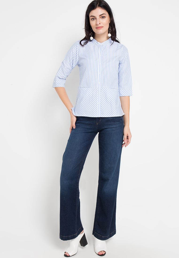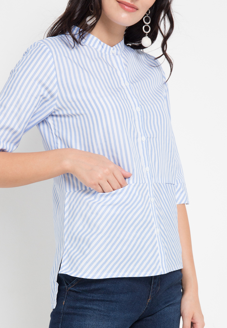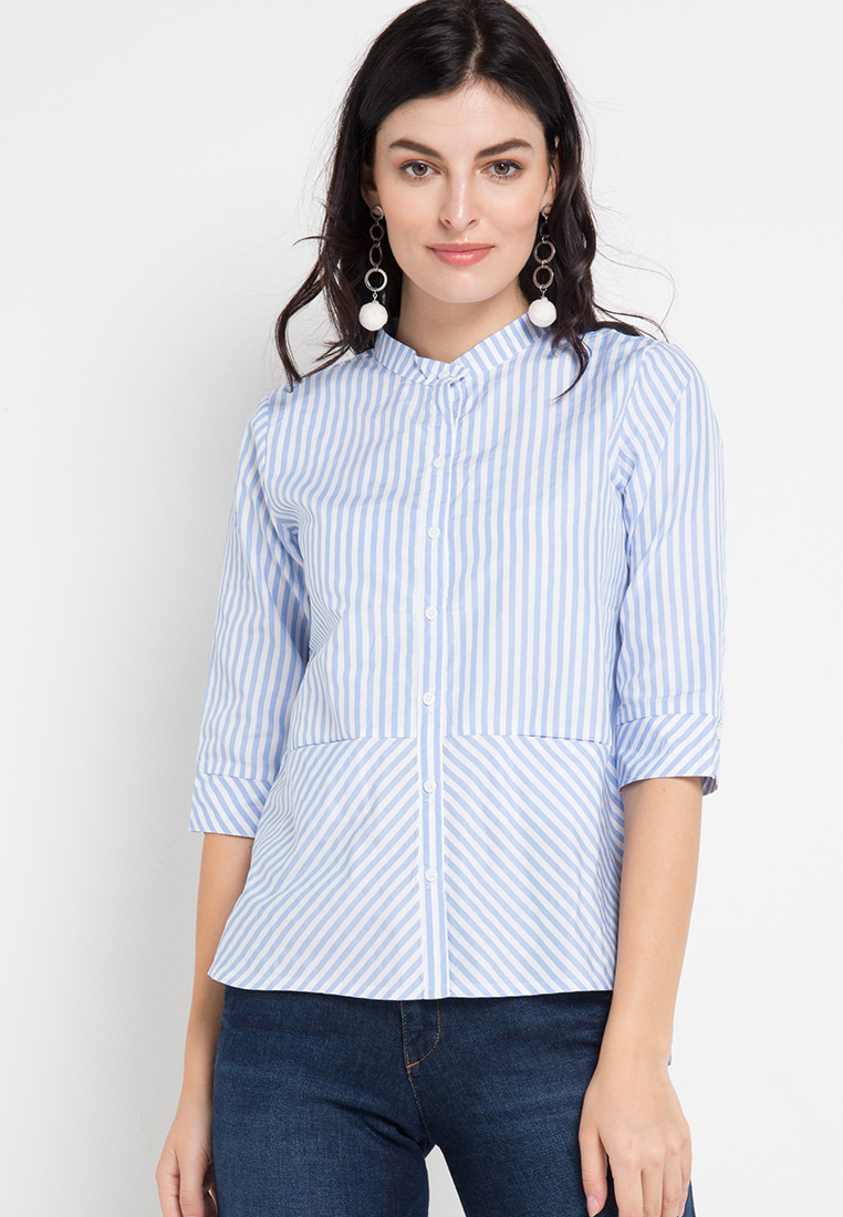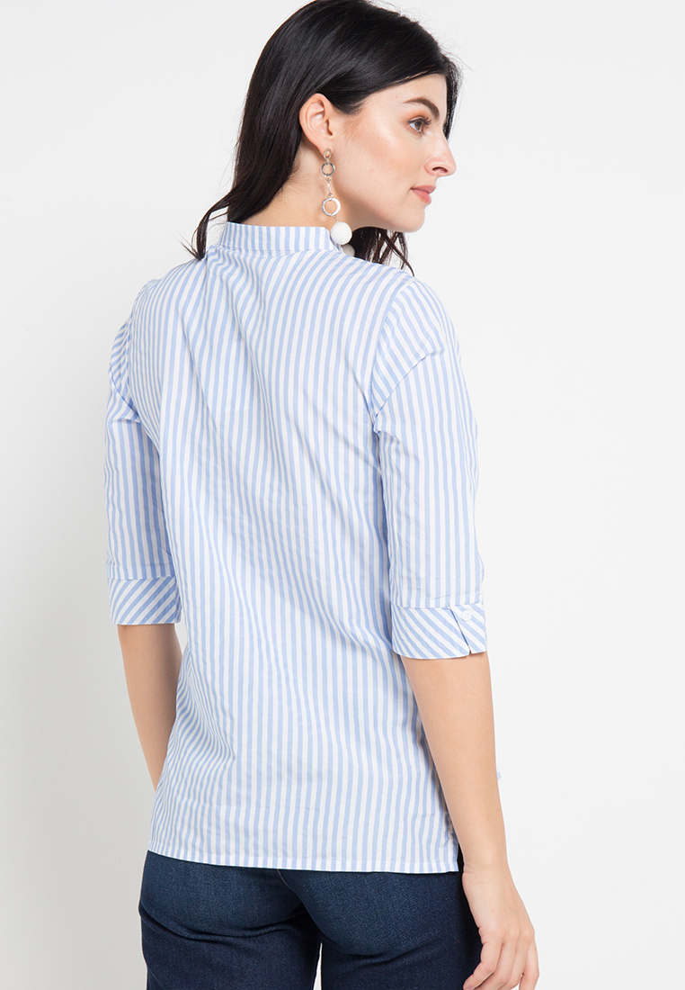 Blouse Wanita Lengan Panjang Striped Biru Muda – 9211611