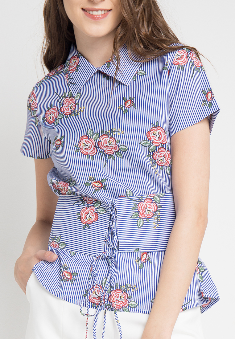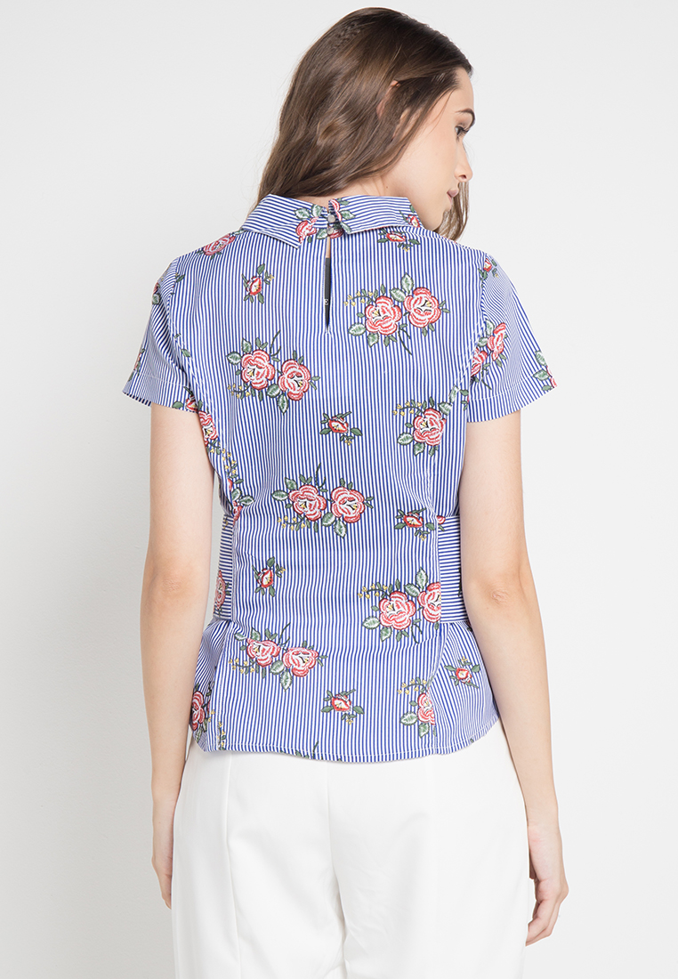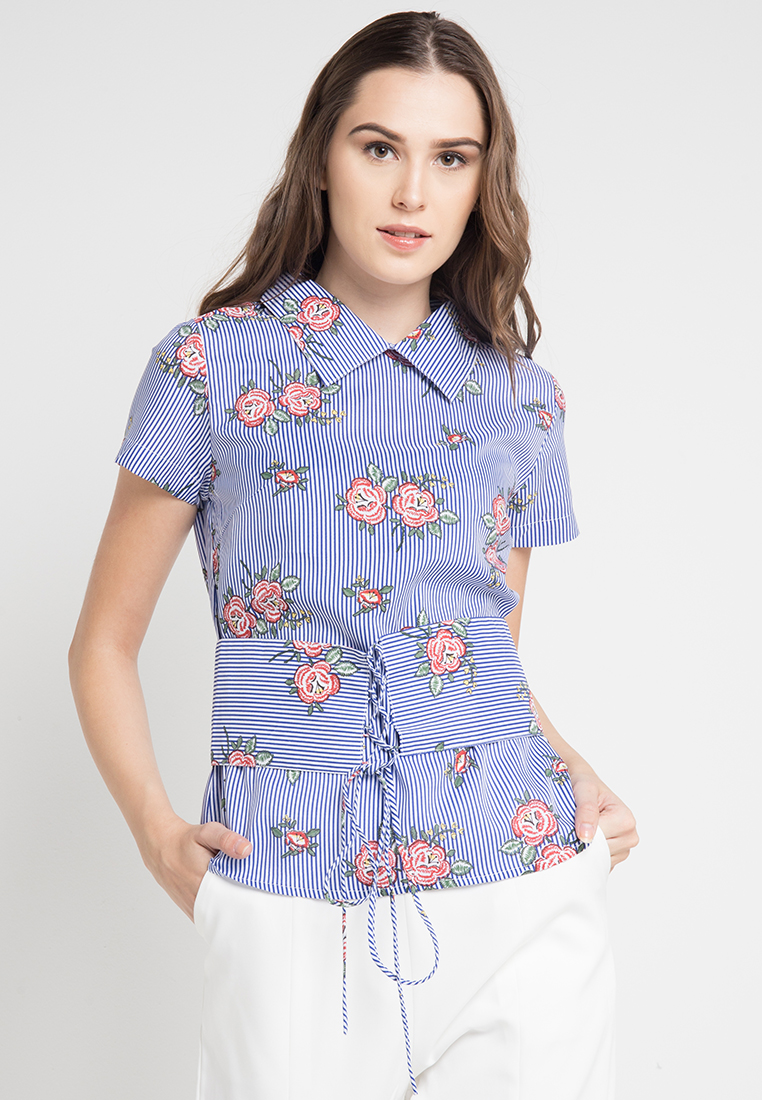 Blouse Wanita Lengan Pendek Biru – 9221484