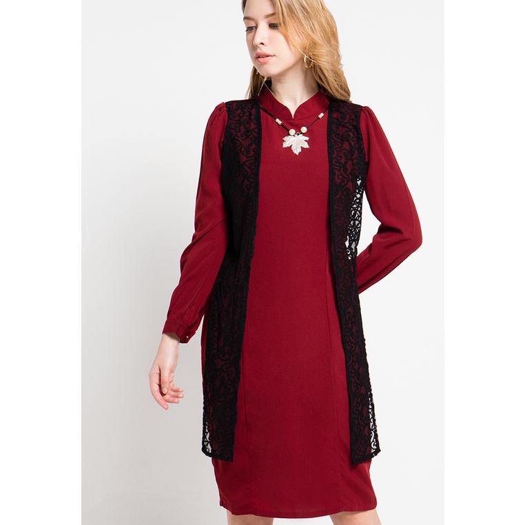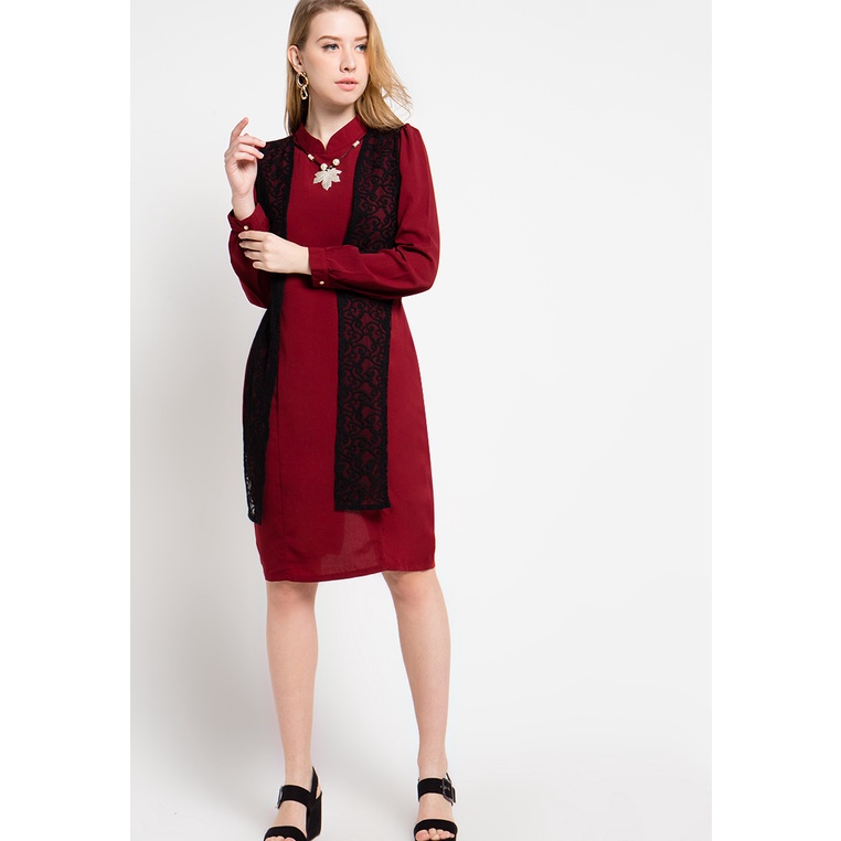 FAME – Dress Midi Wanita Maroon – 9510943
