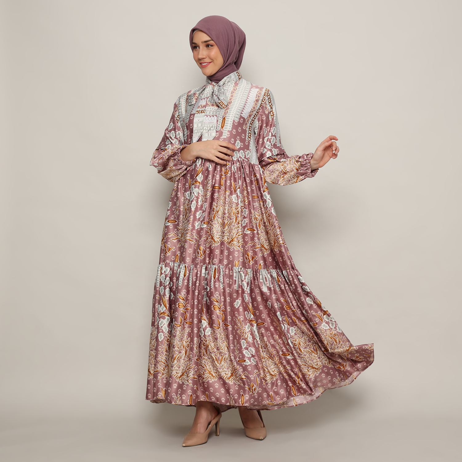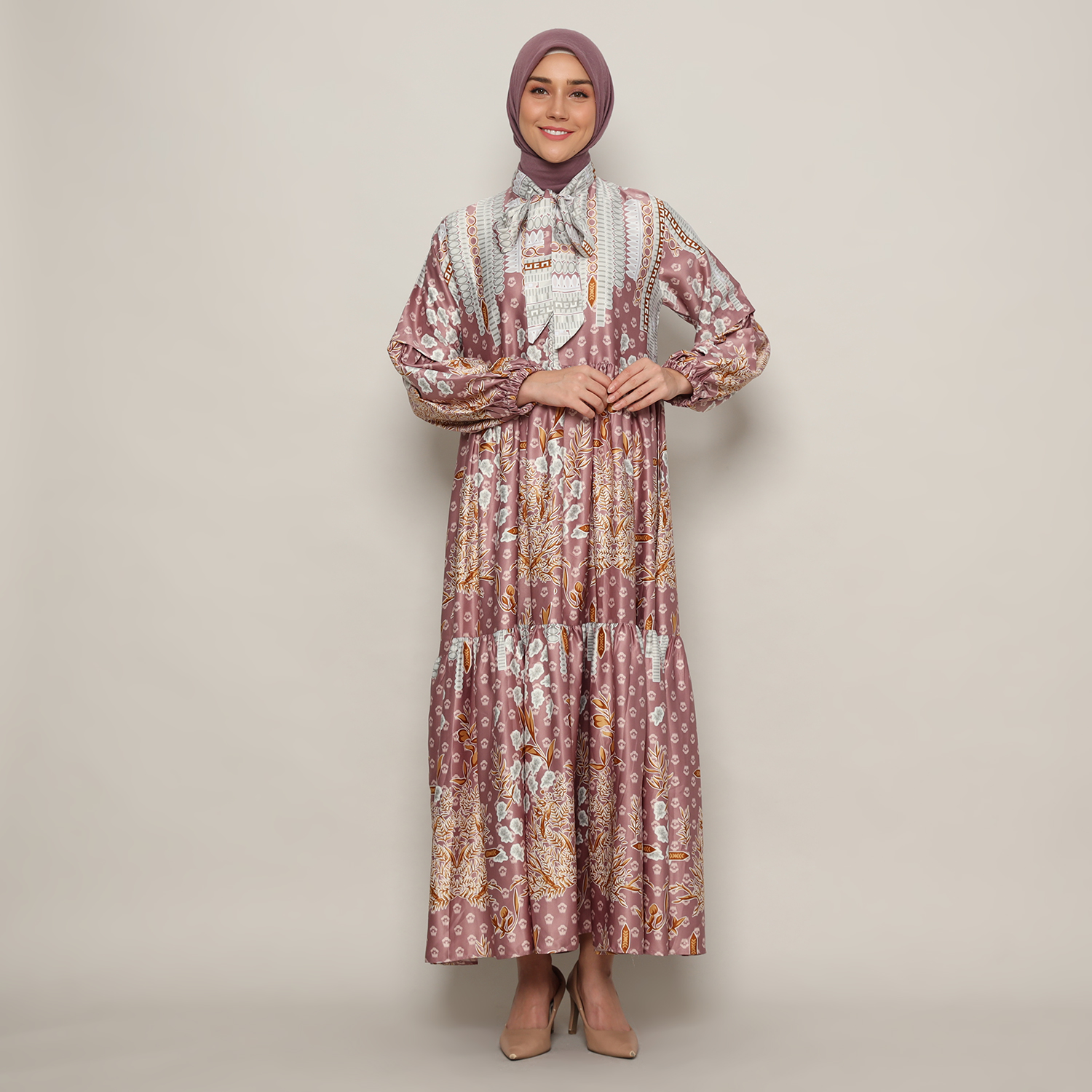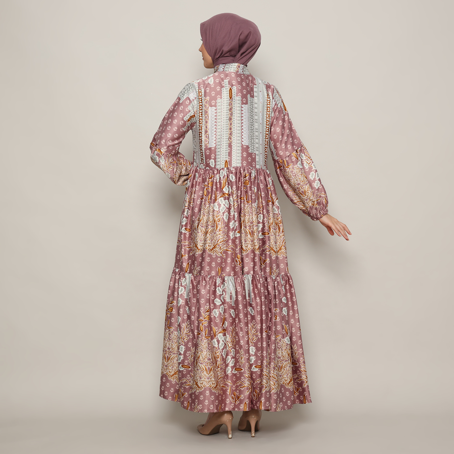 Gamis Susun Wanita Print Dusty Pink – 9911159