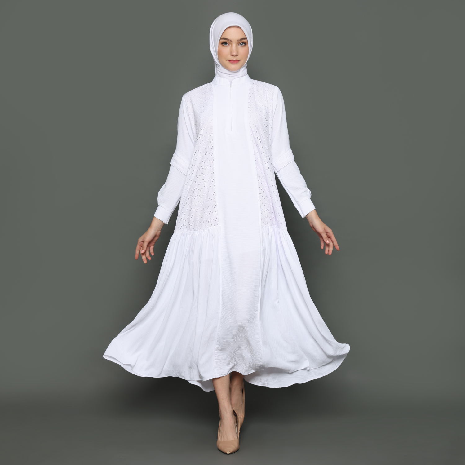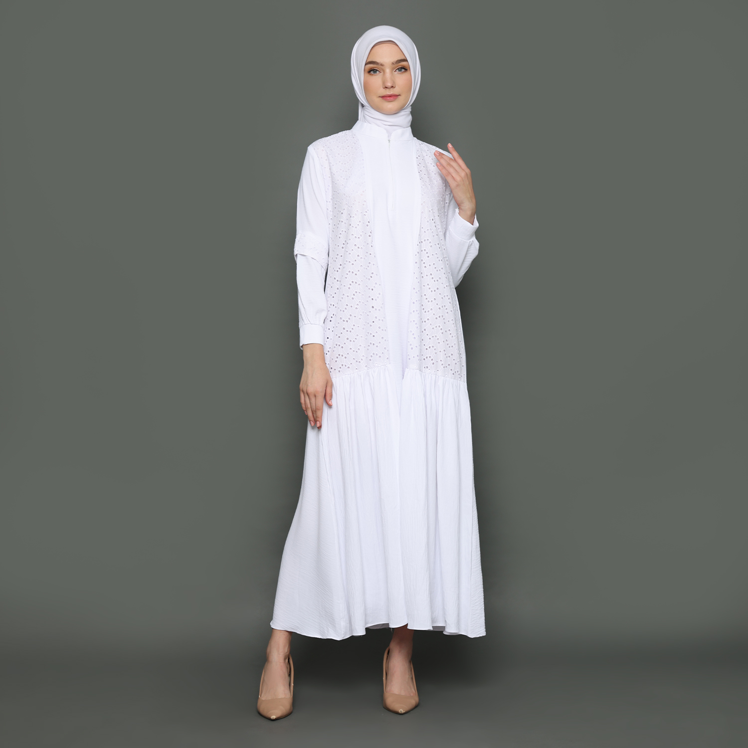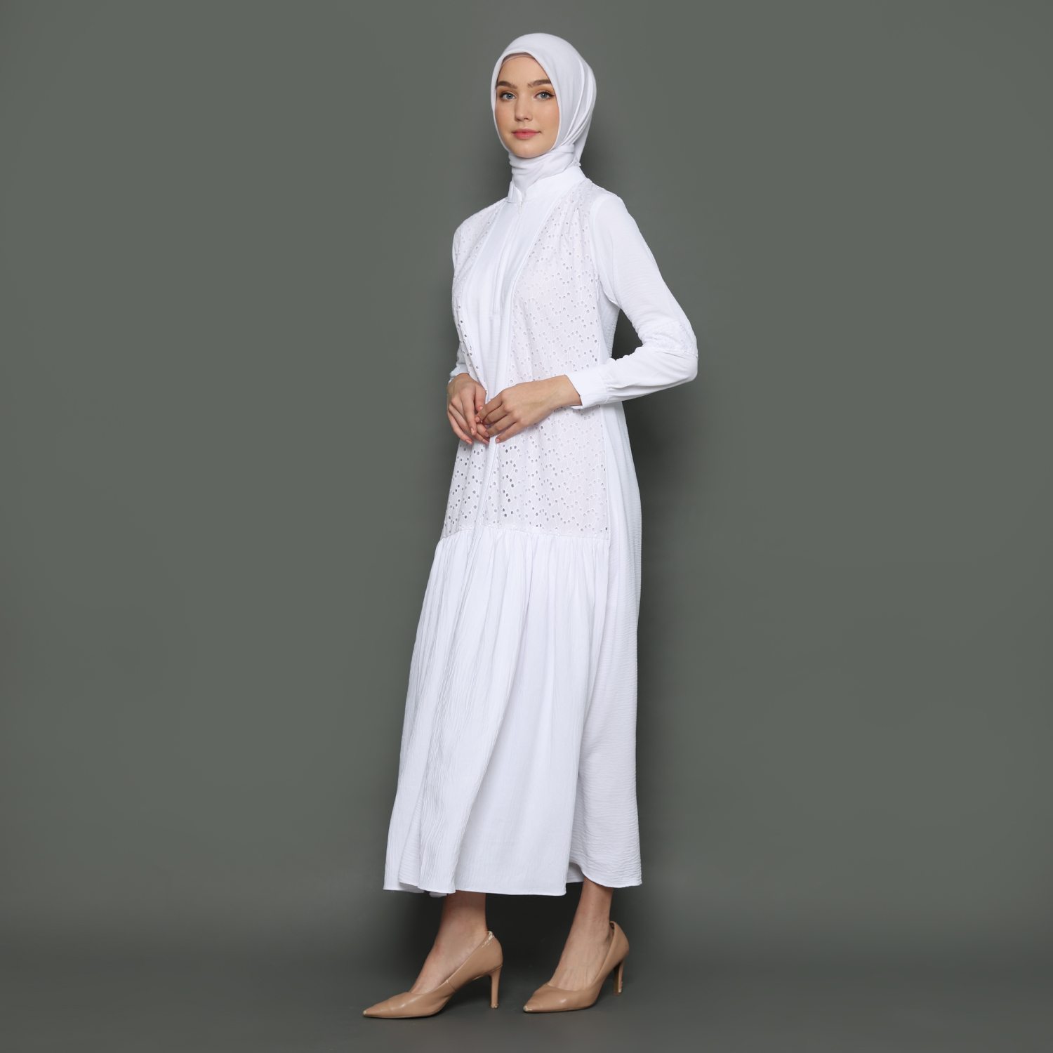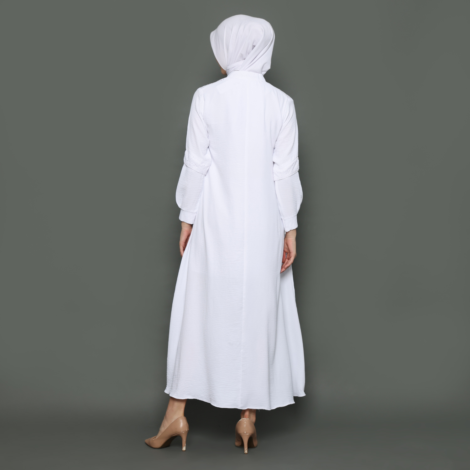 Gamis Wanita Kerah Tinggi Putih – 9911125