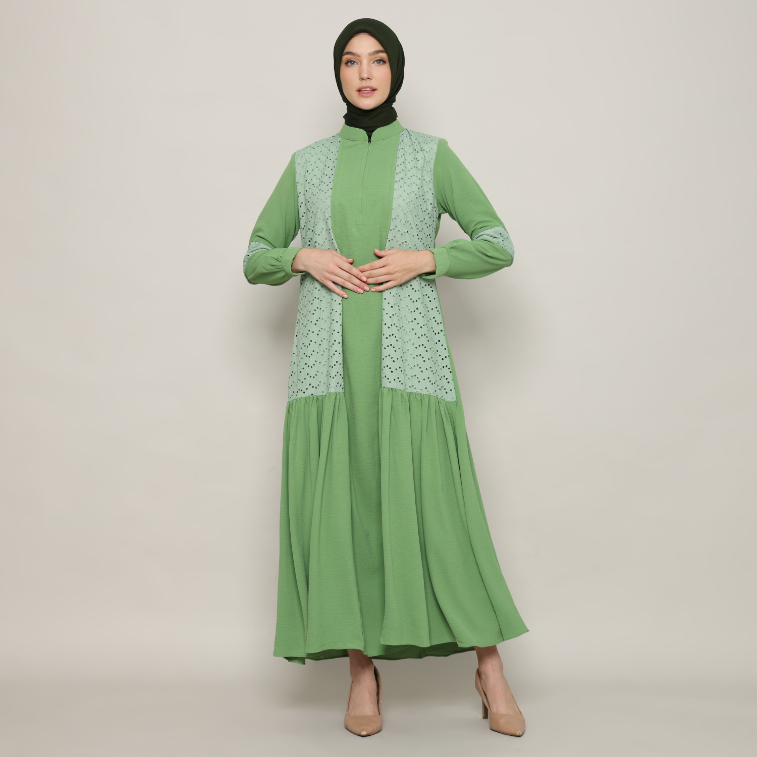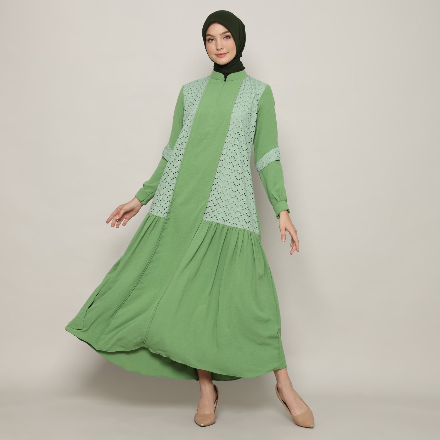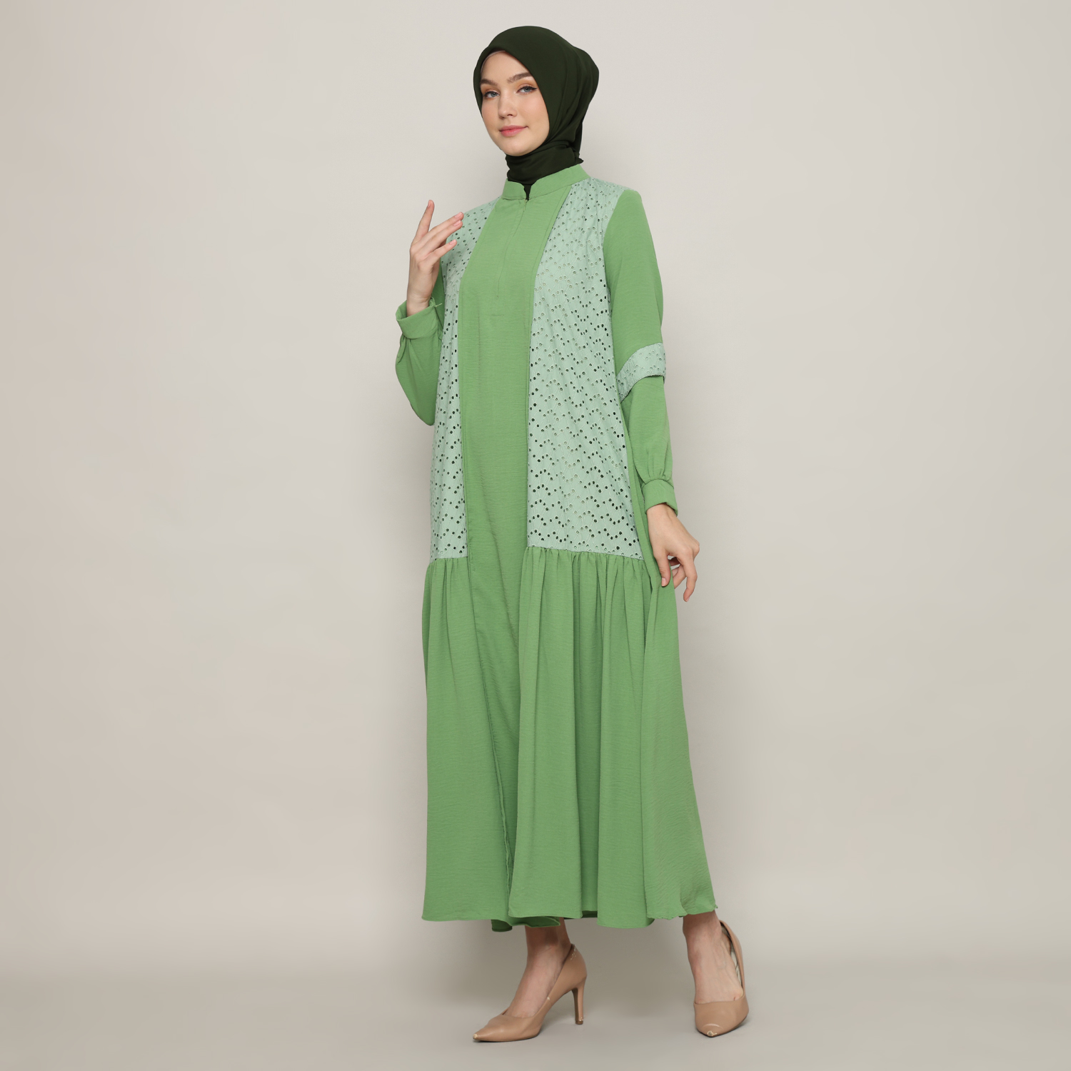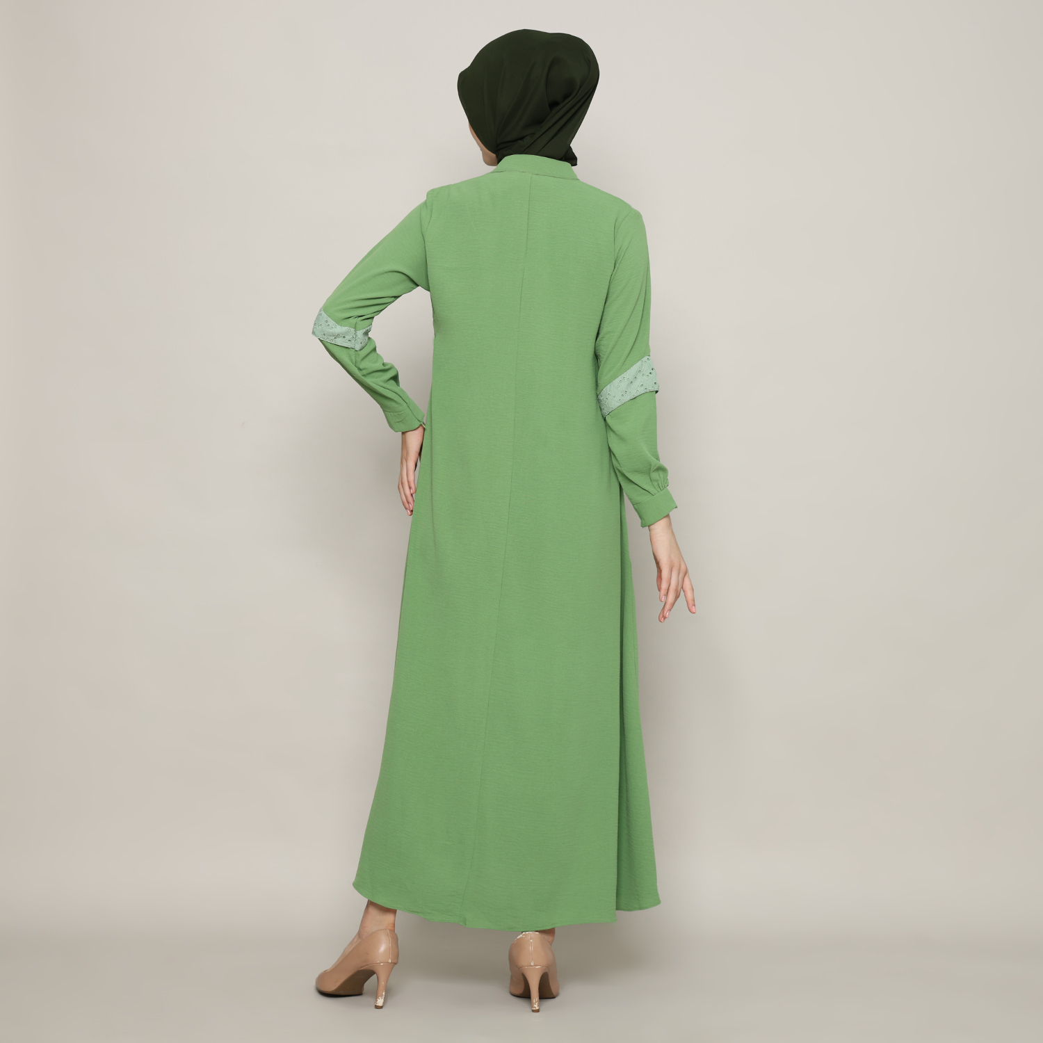 Gamis Wanita Kerah Tinggi Sage Green – 9911127