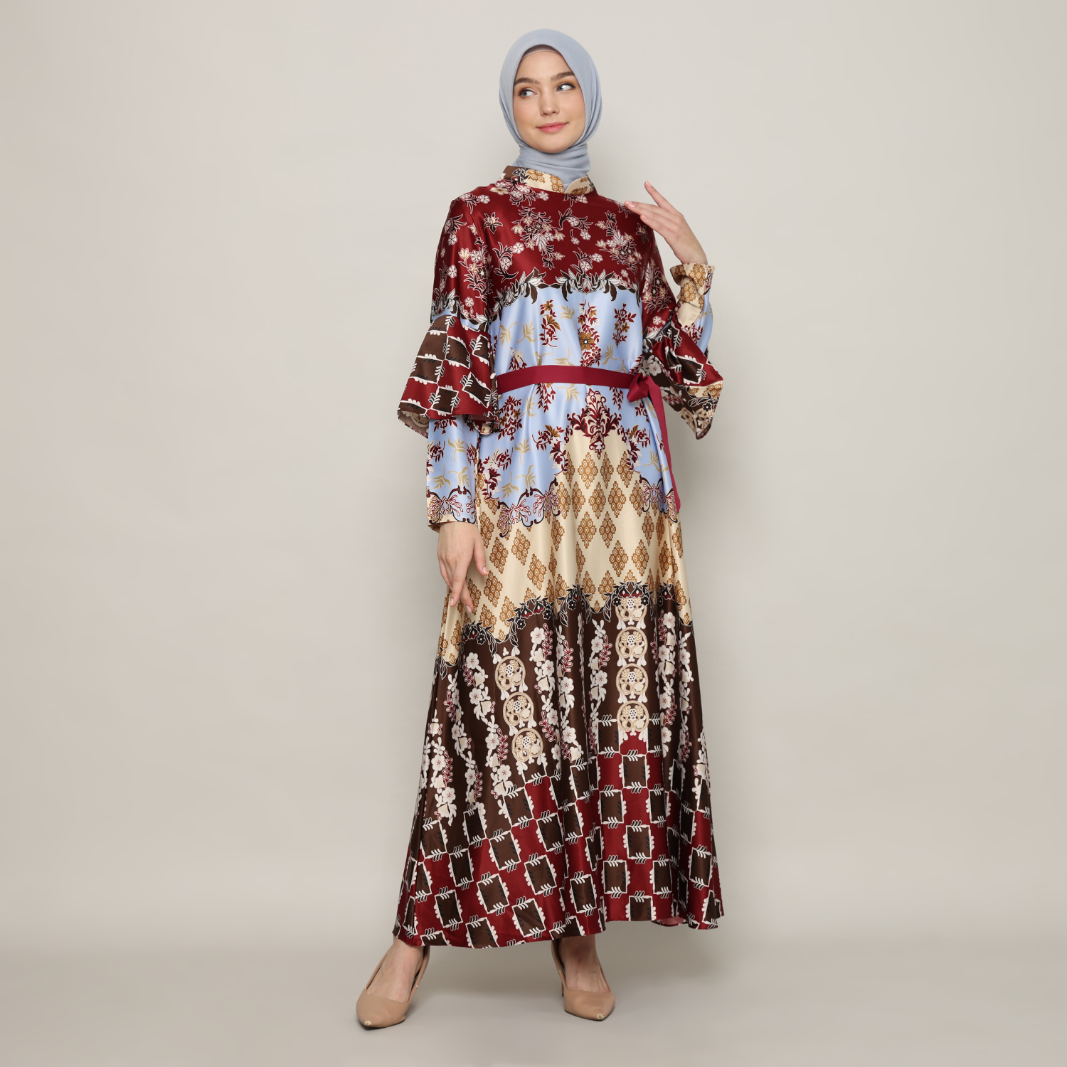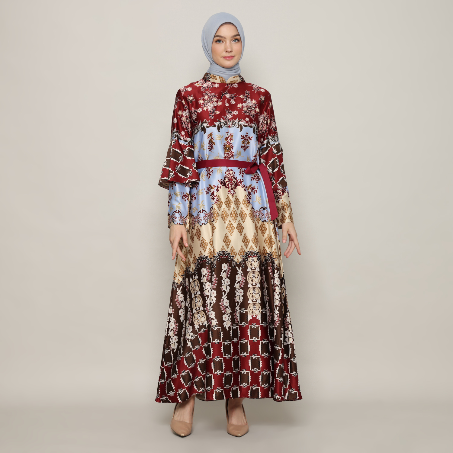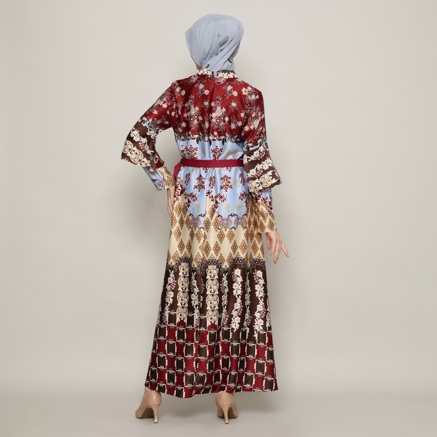 Gamis Wanita Silky Print Maroon – 9911130