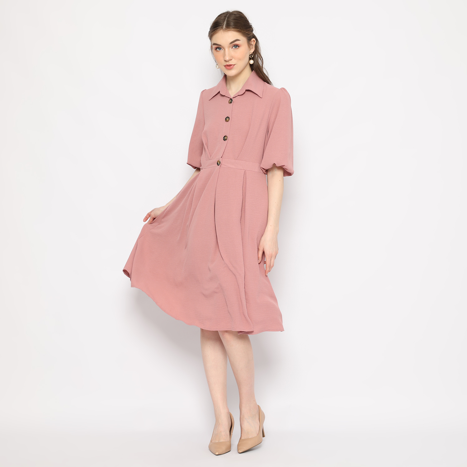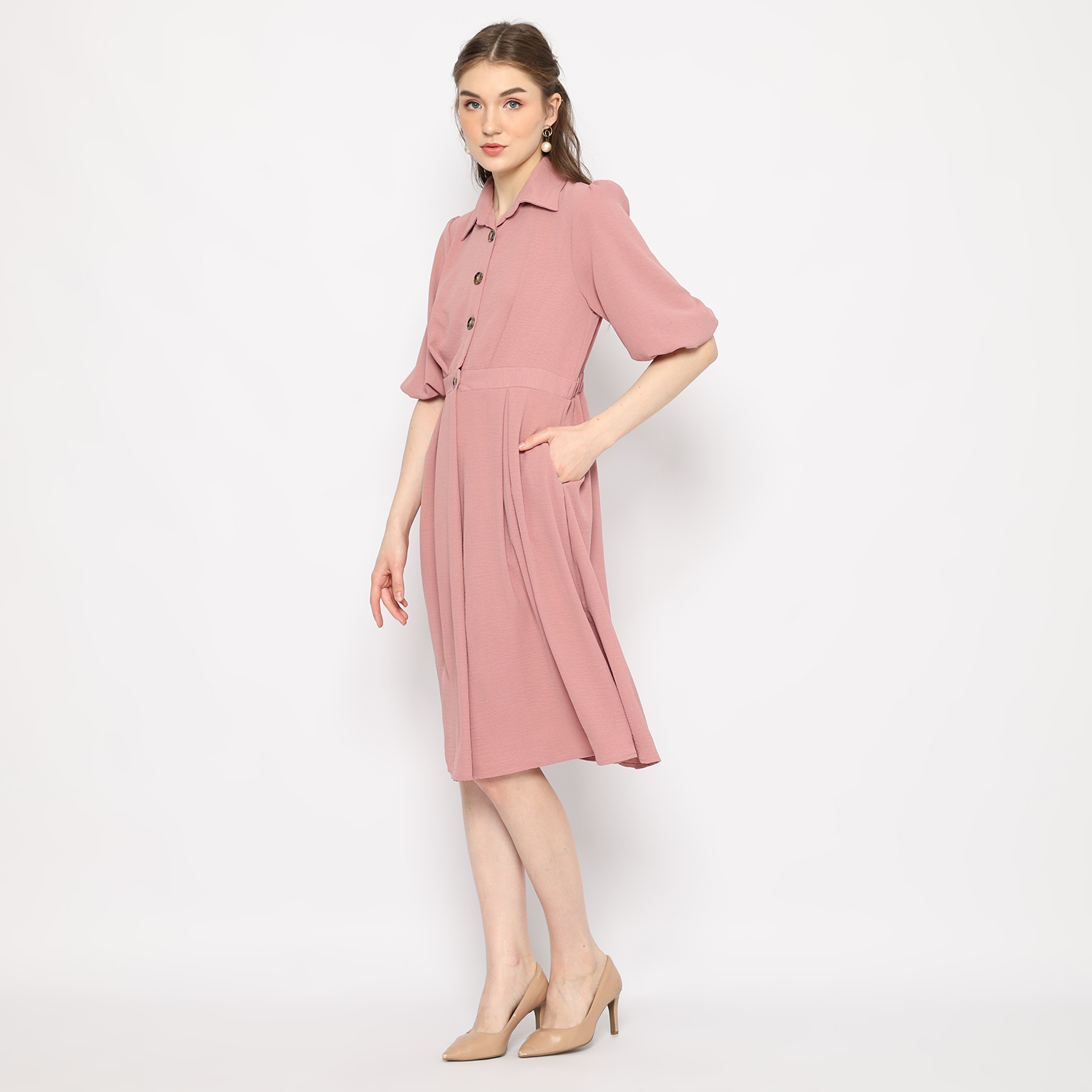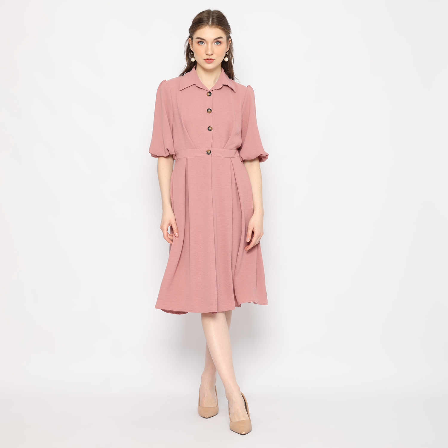 Midi Dress Wanita Dusty Pink – 9511050