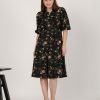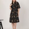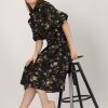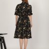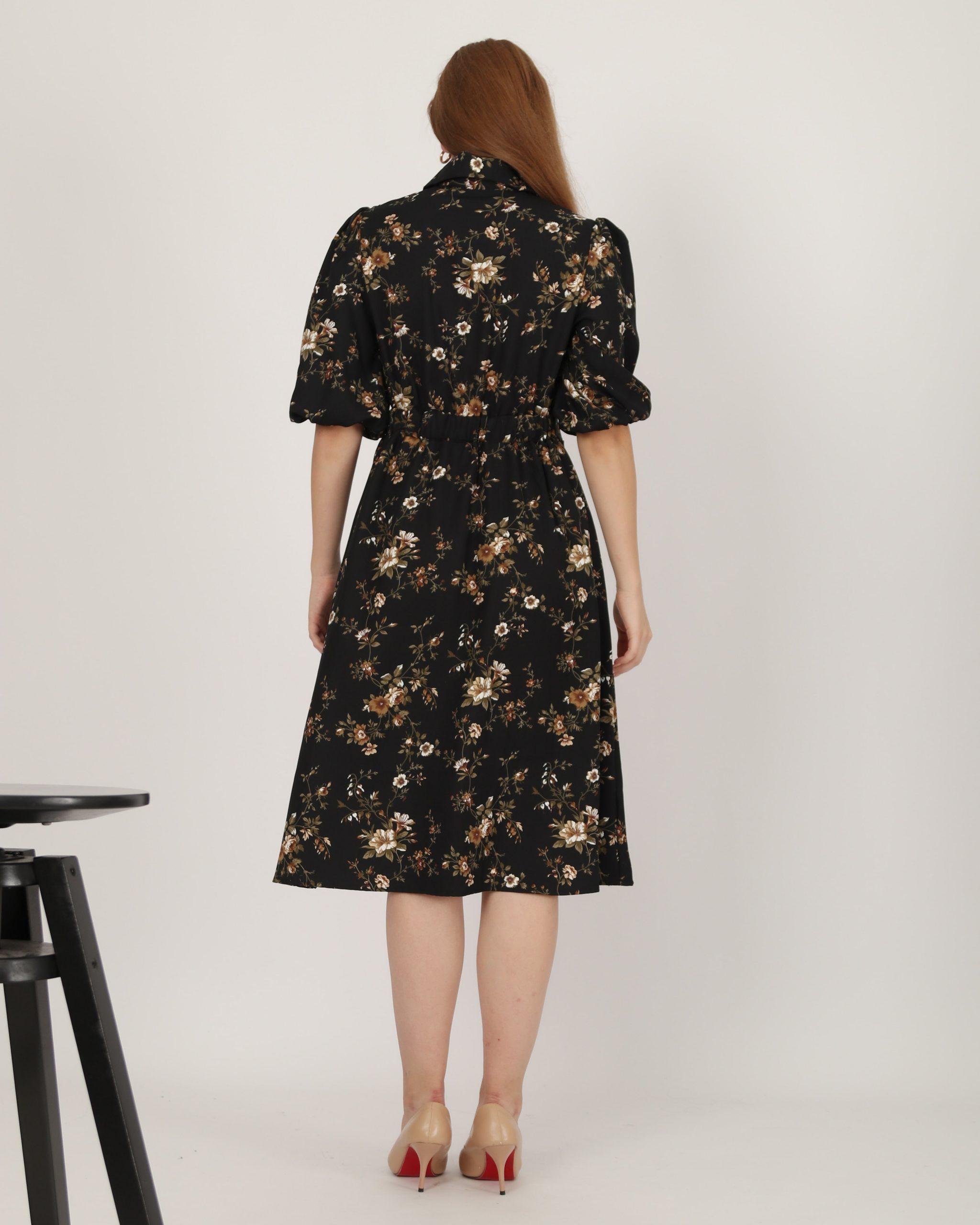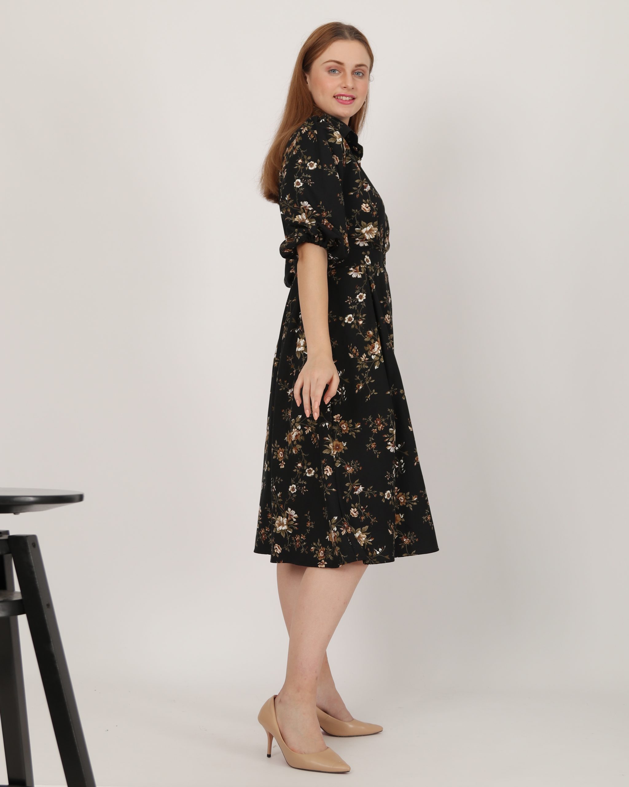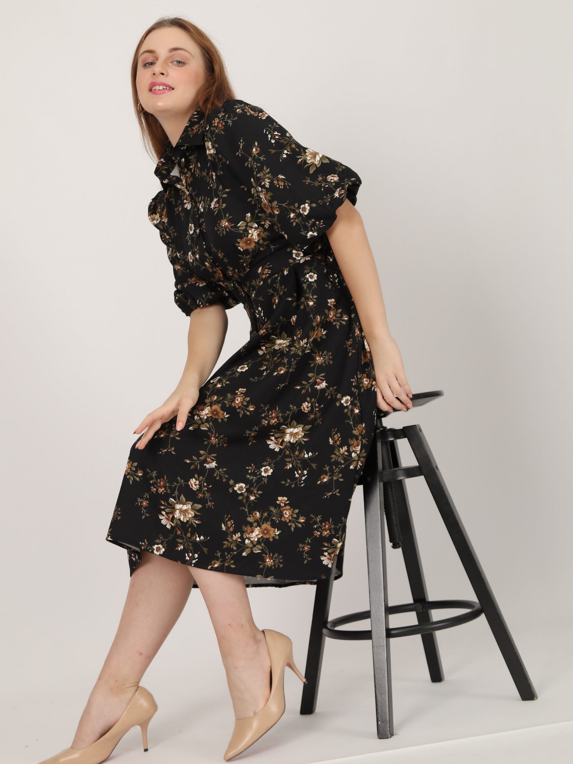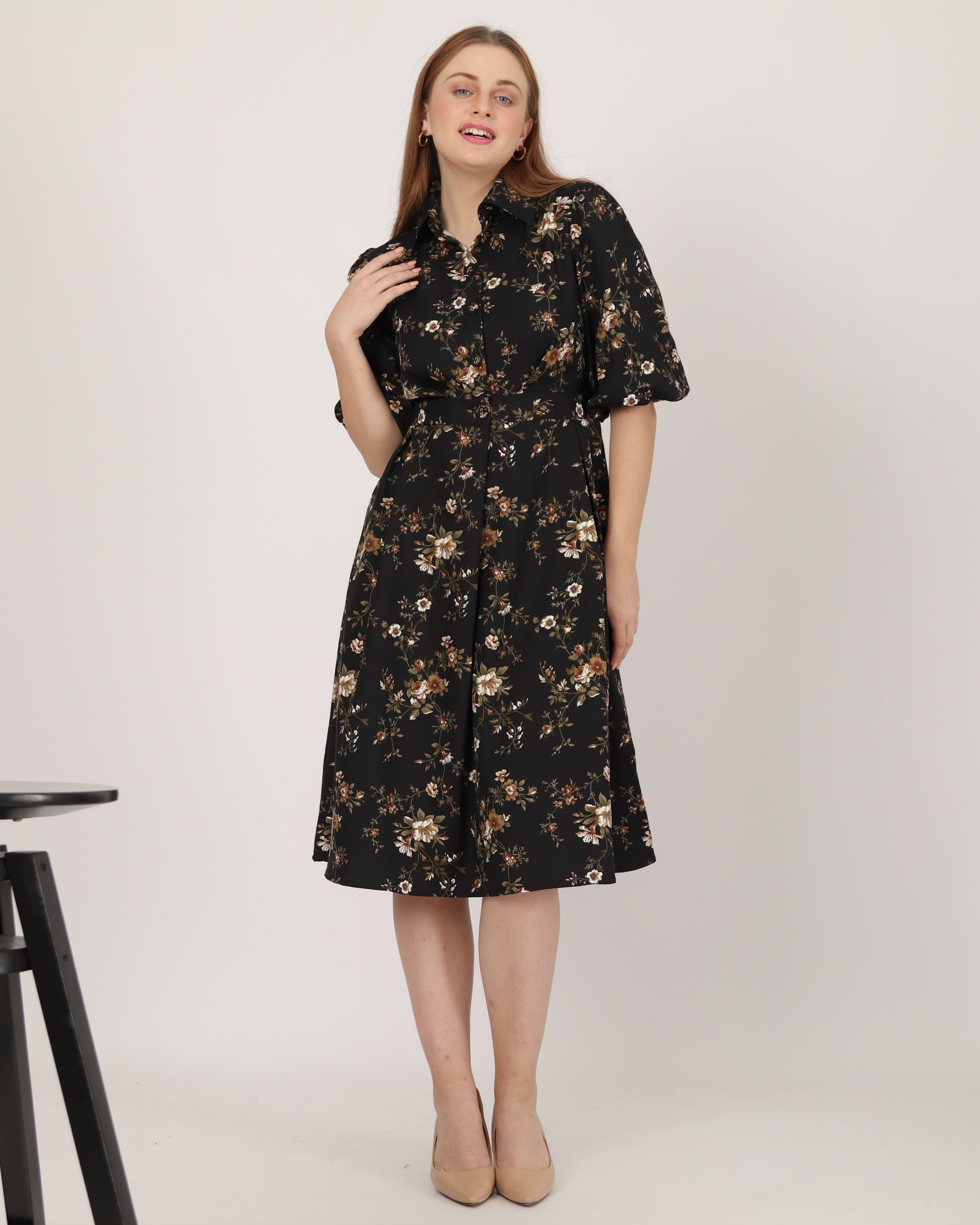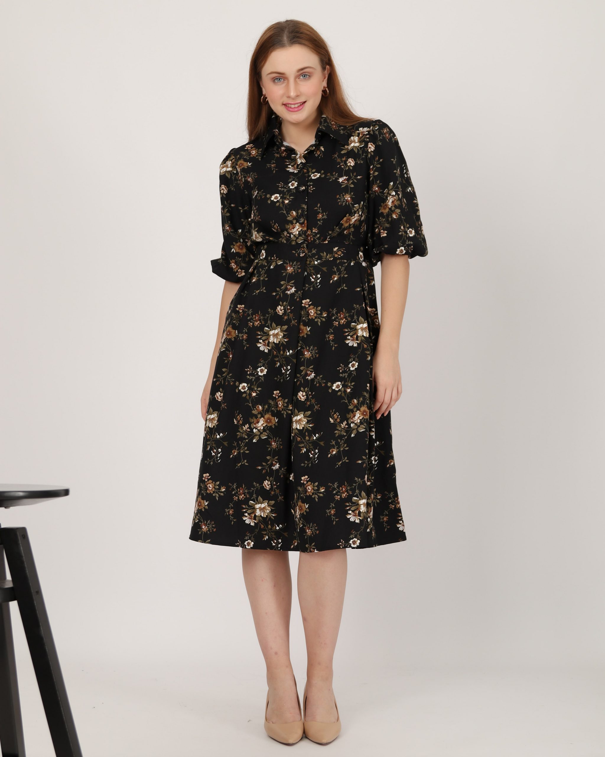Midi Dress Wanita Floral Print Hitam – 9511046