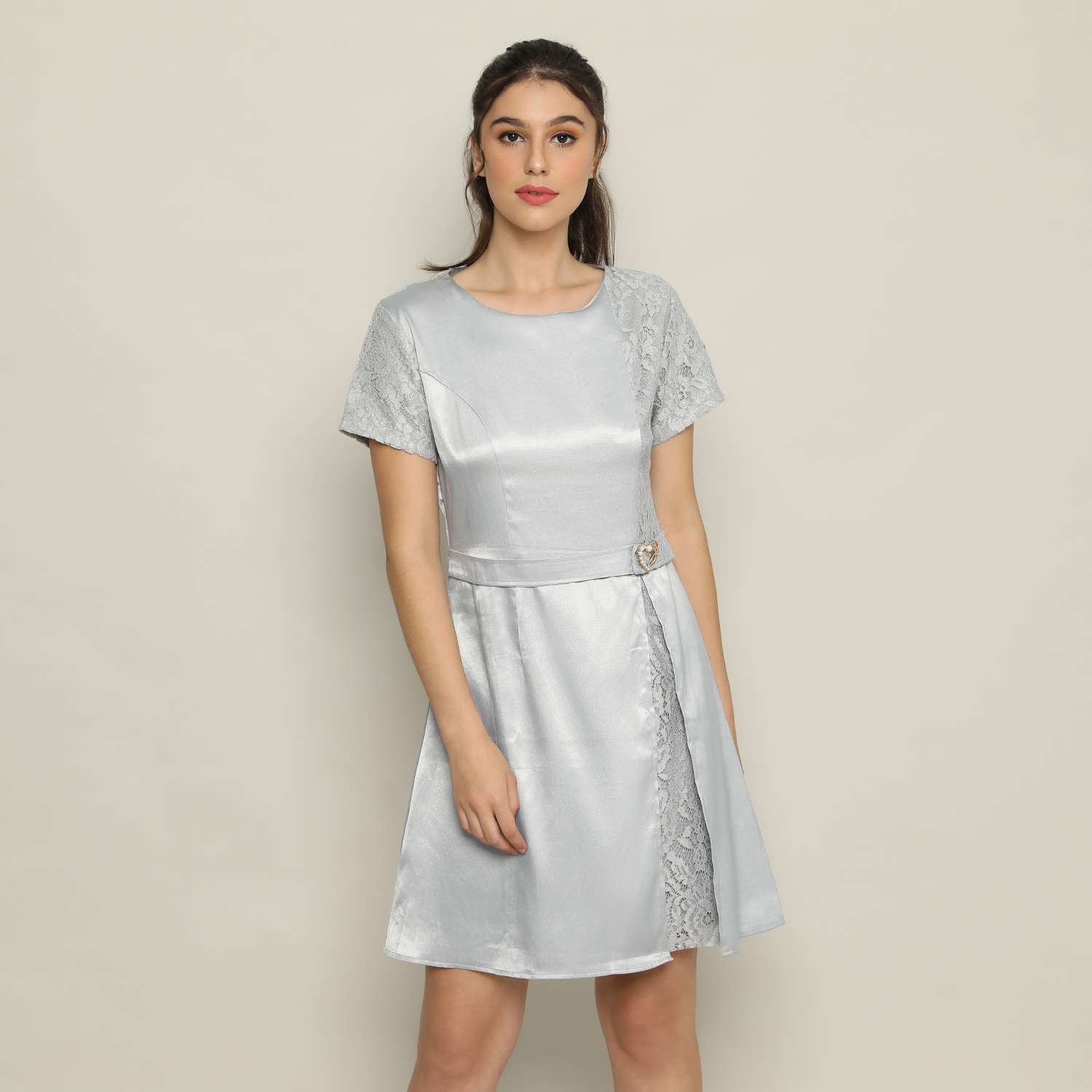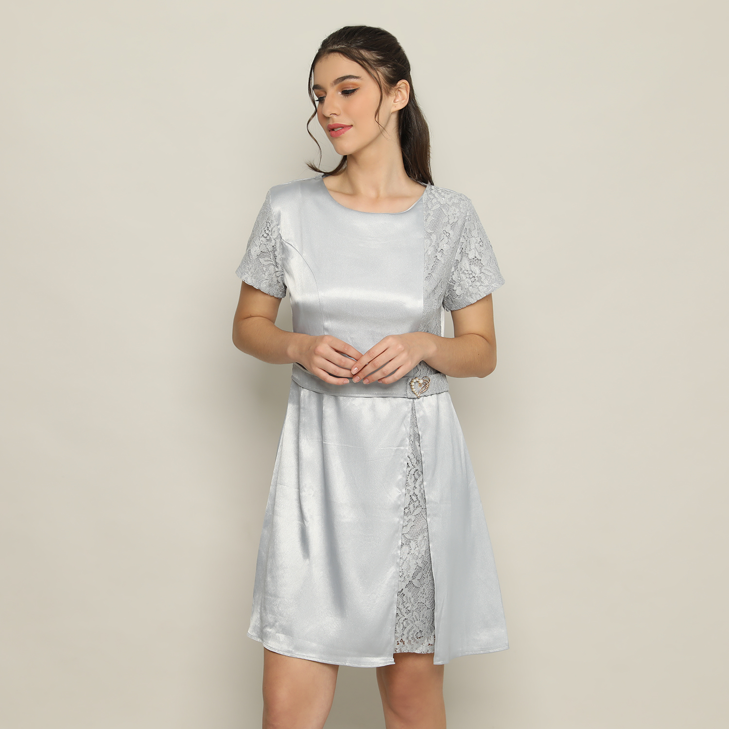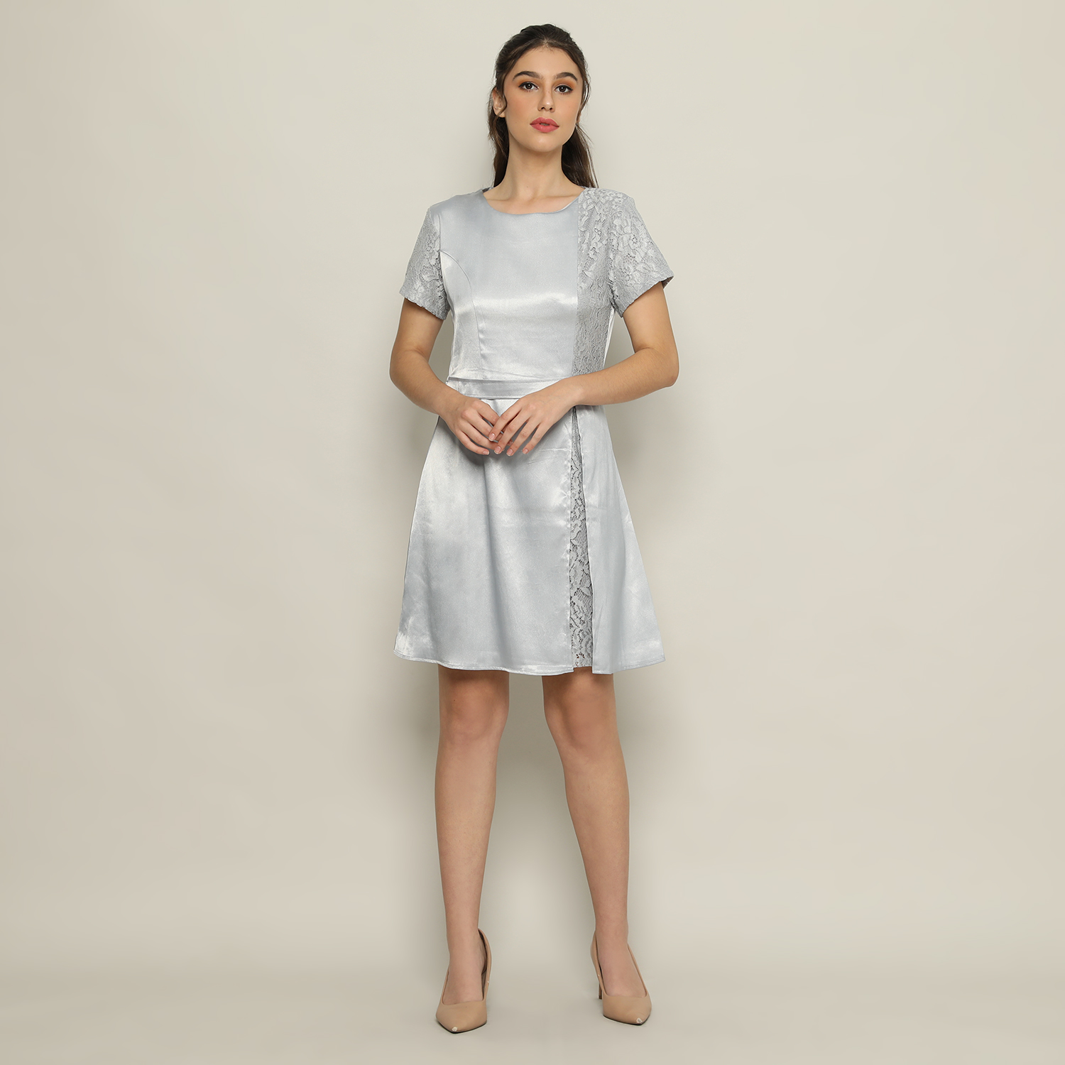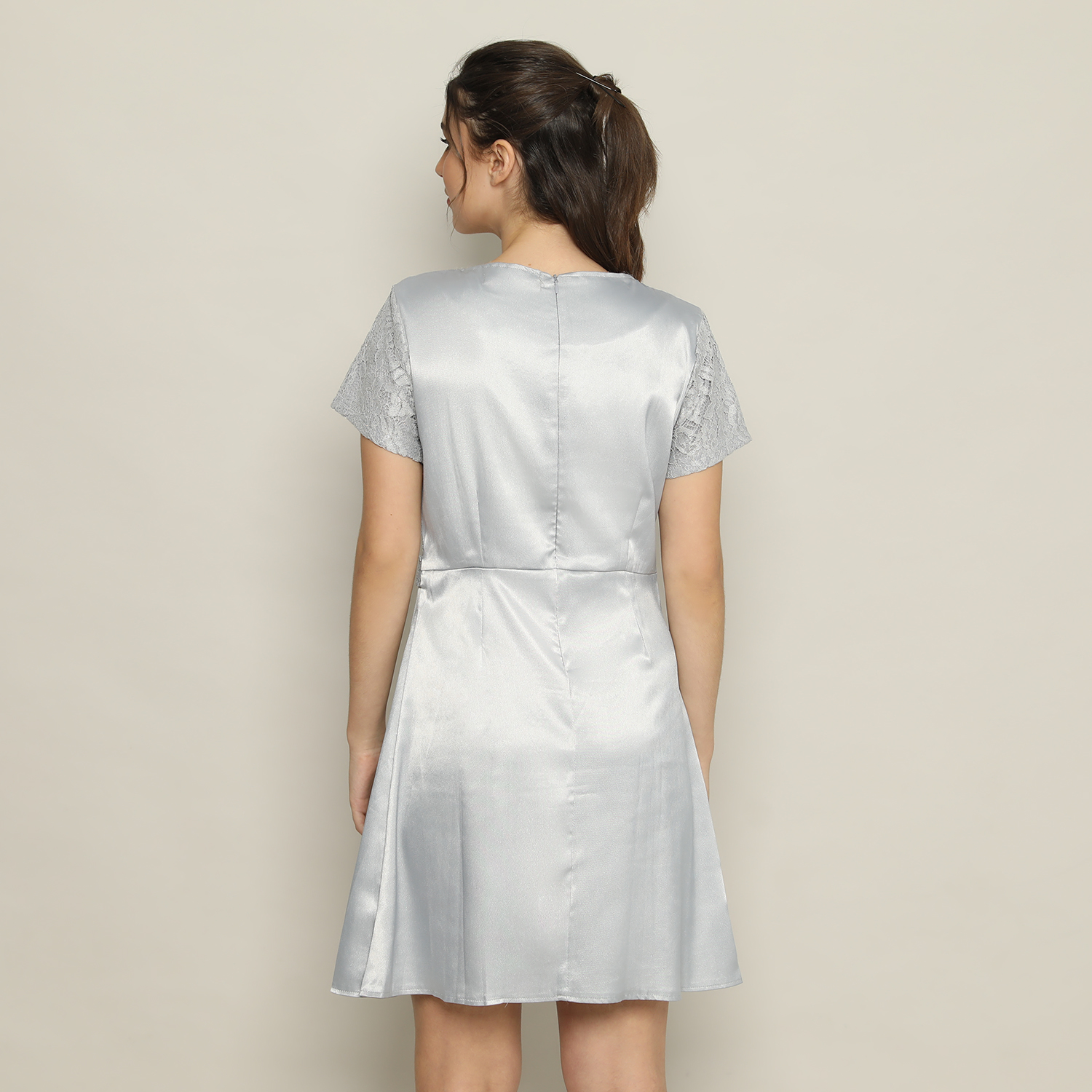 Satin Fit & Flare Dress Wanita Silver – 9511013