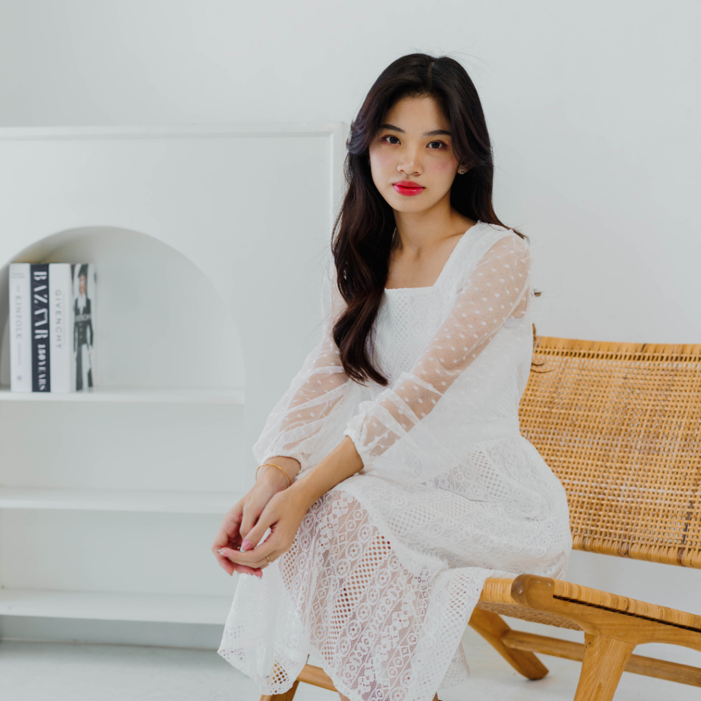 – Tinggi model 164cm, mengenakan ukuran M