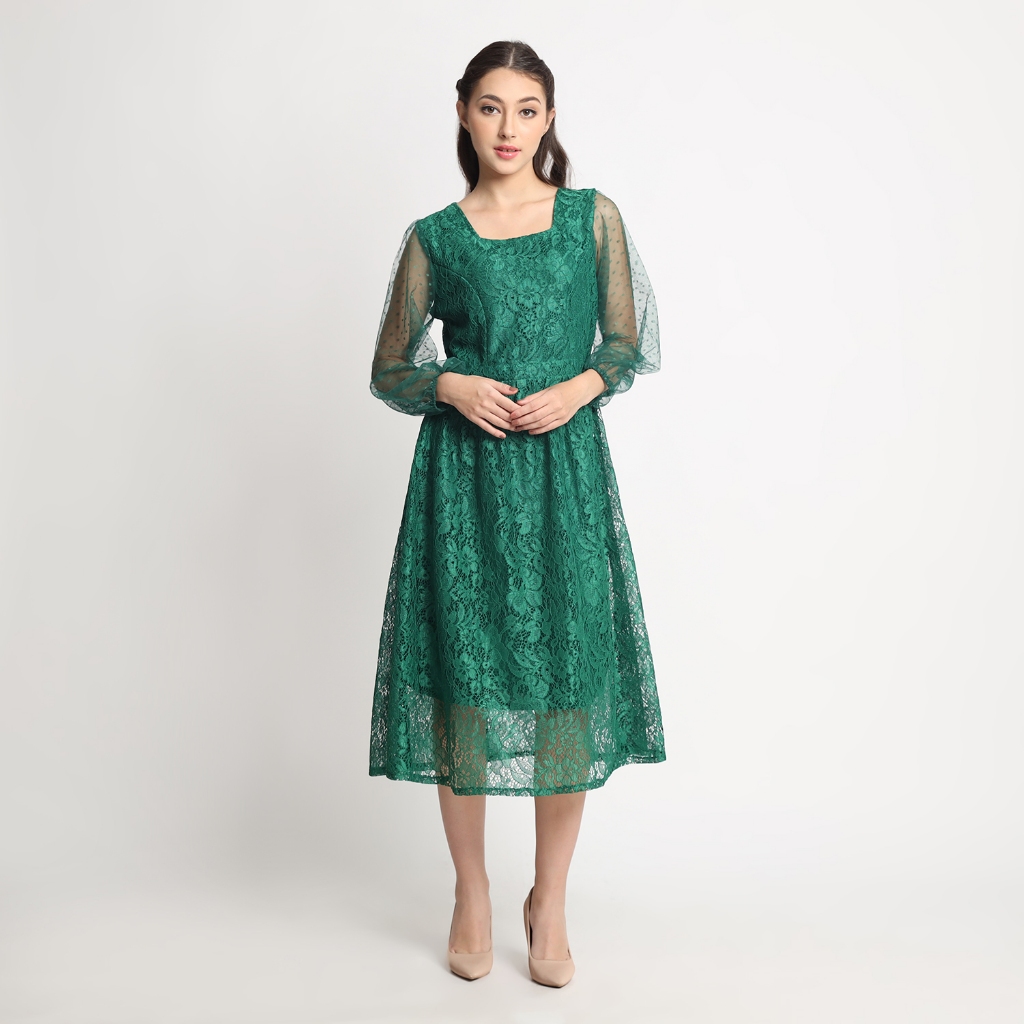 – Square neck dress brukat