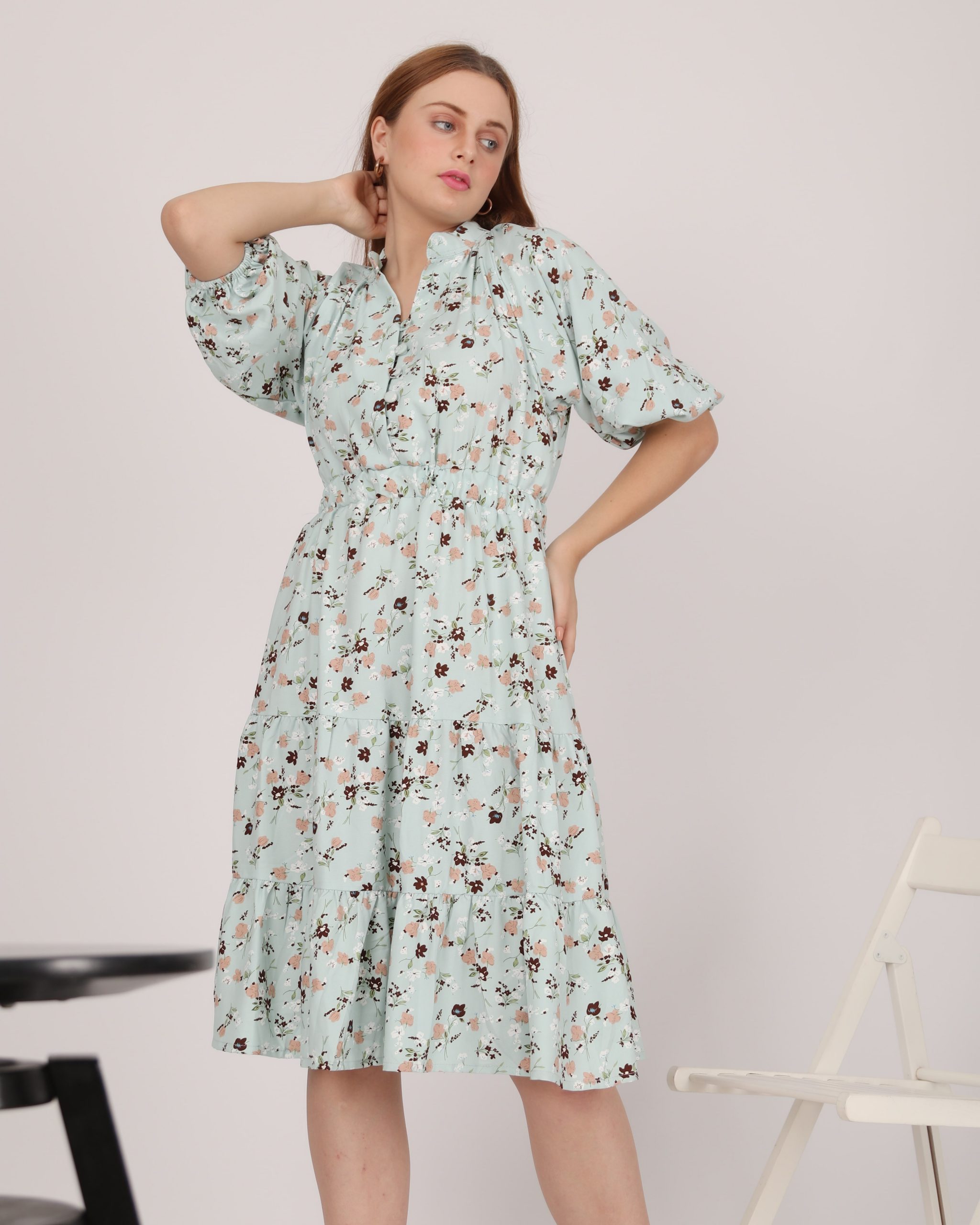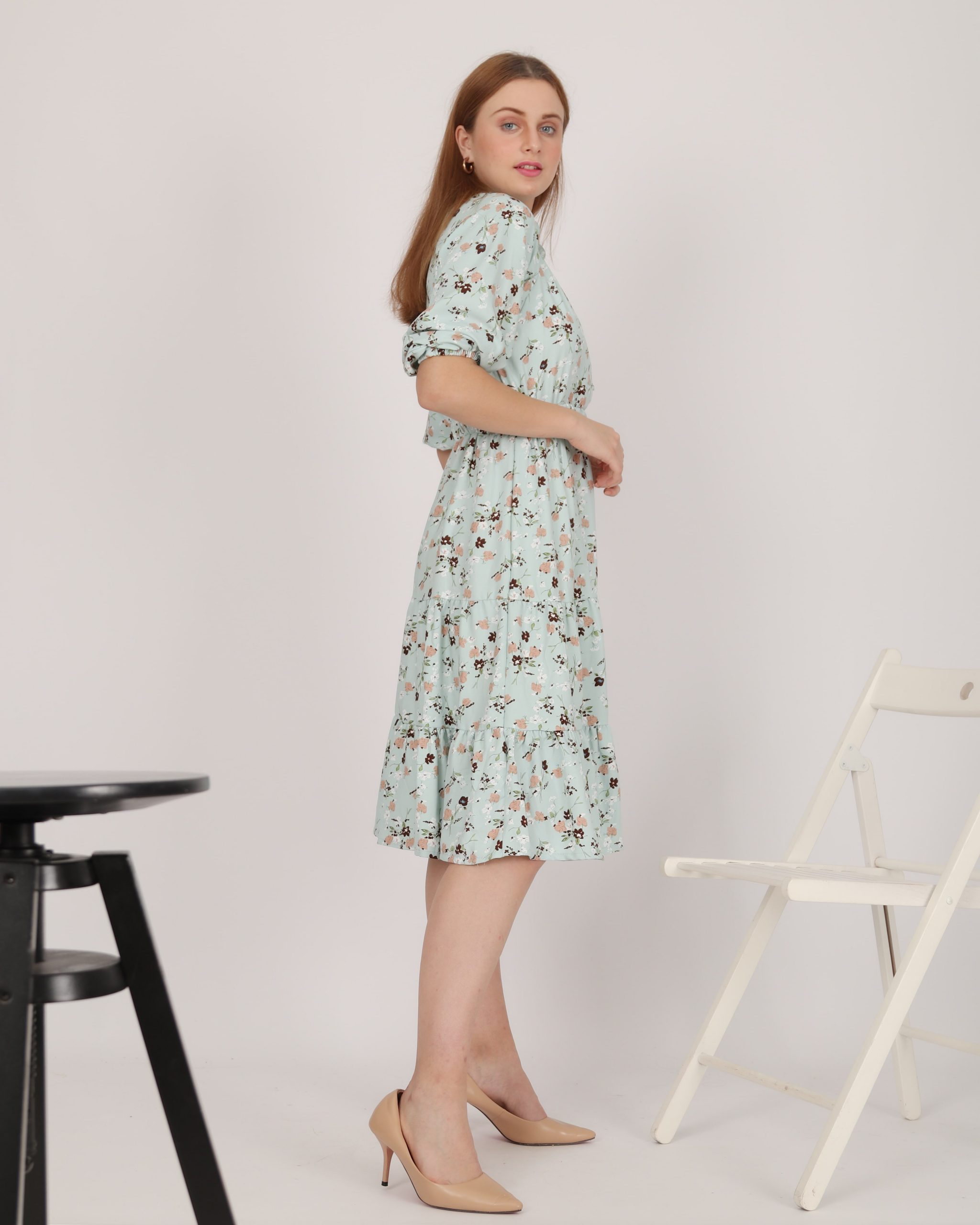 Tiered Midi Dress Wanita Floral Print Wardah Green – 9511052