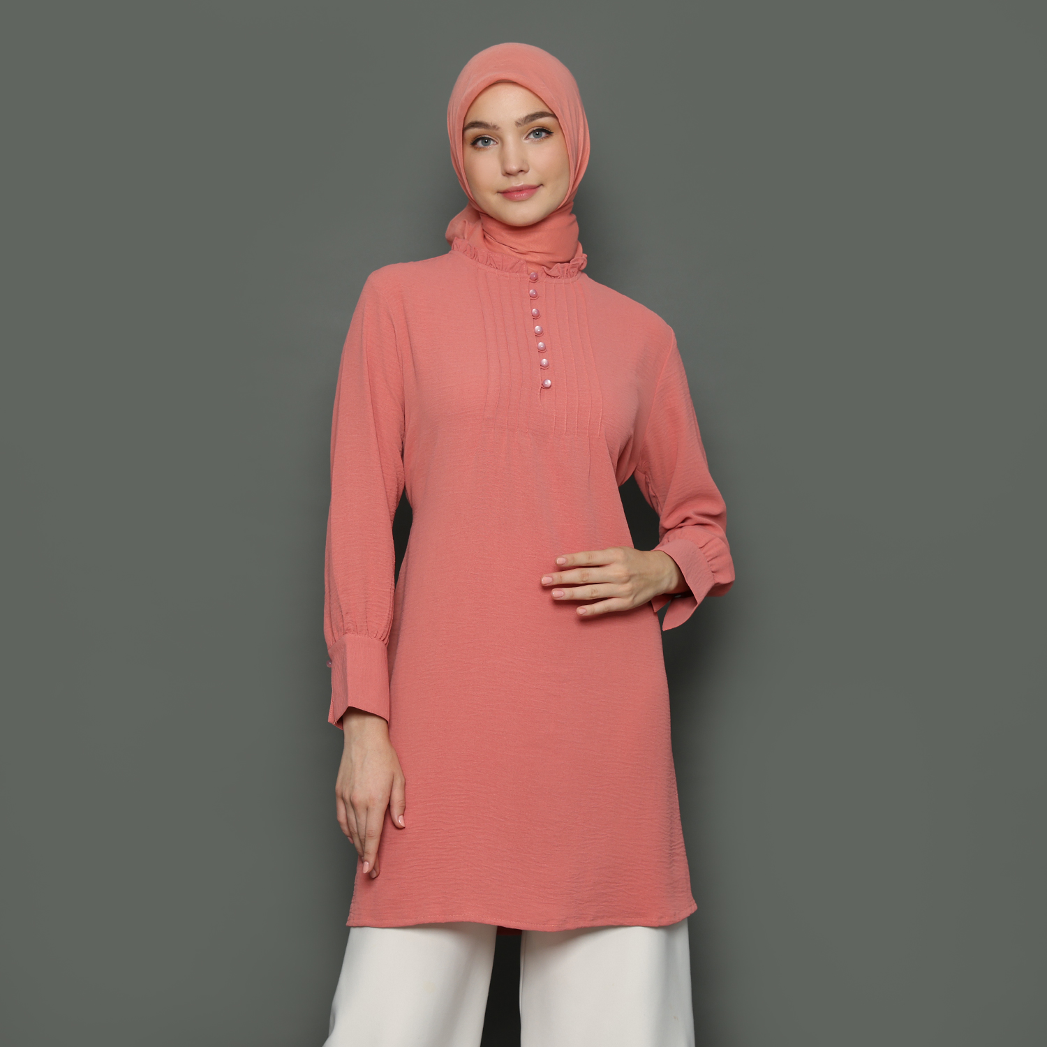 Tunik Pintuck Wanita Broken Salmon – 9211768