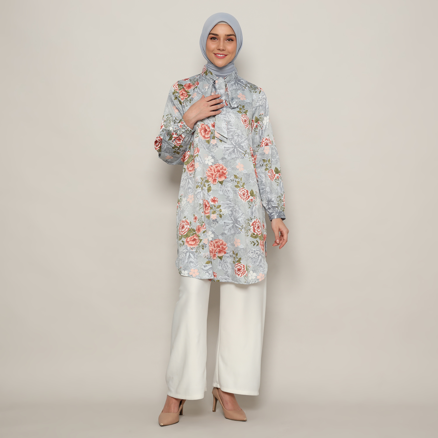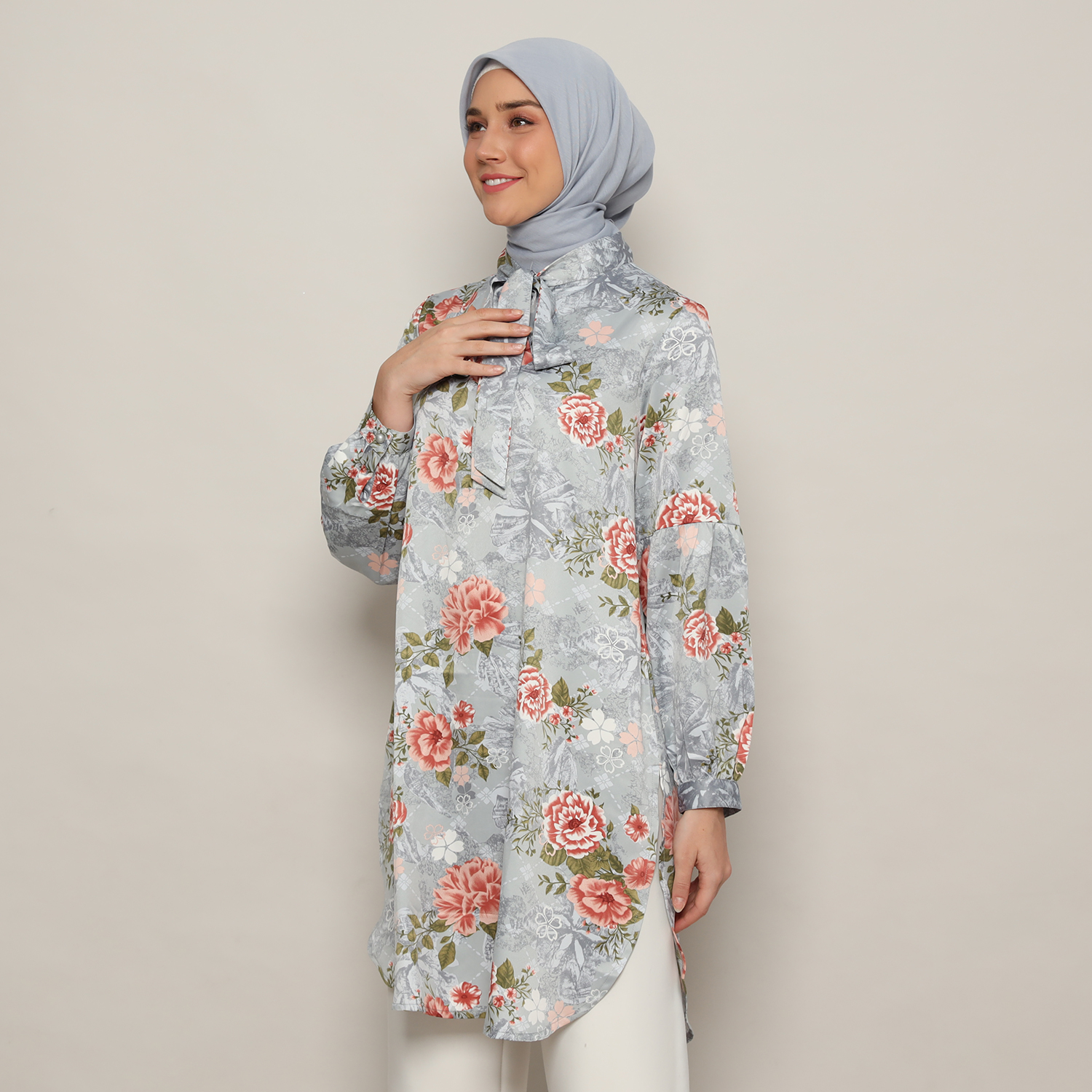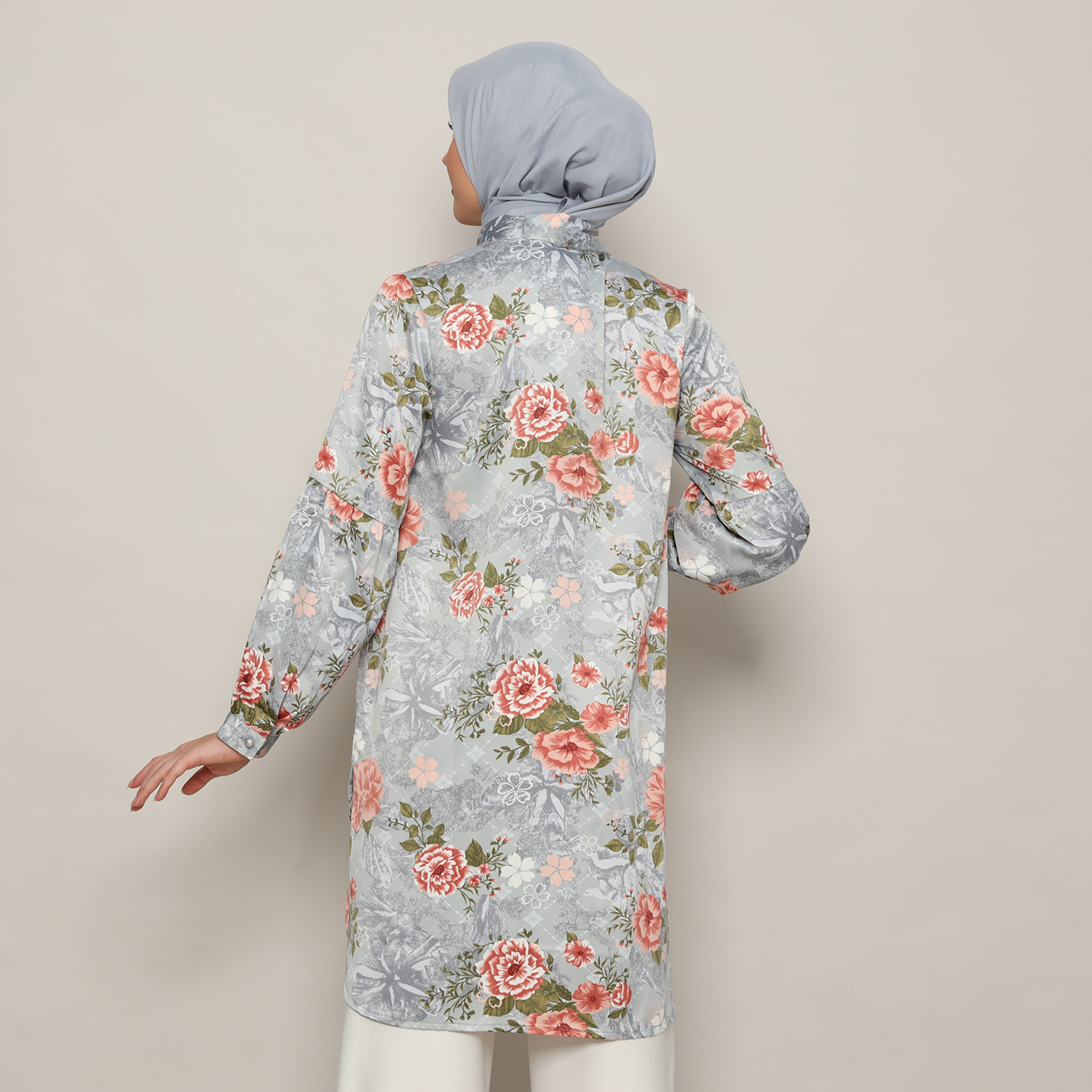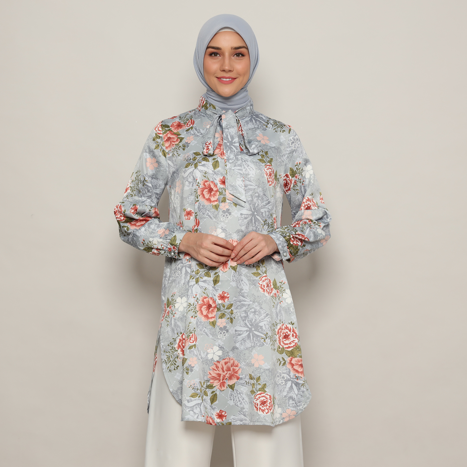 Tunik Pita Wanita Lengan Panjang Print Light Grey – 9211772